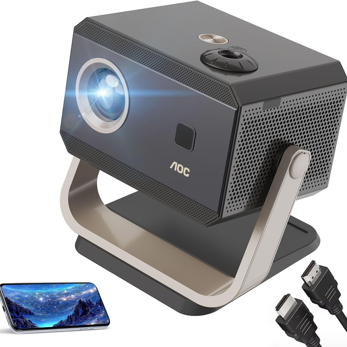 AOC Portable Projector Full HD 4K/1080P, Autofocus/Auto Keystone Correction/Adjustable Angle/Projector with Wifi6 and Bluetooth,15000 Lumen,Compatible with IOS/Android/PC/PS4/PS5 for Work and Gaming د.ل 1,190